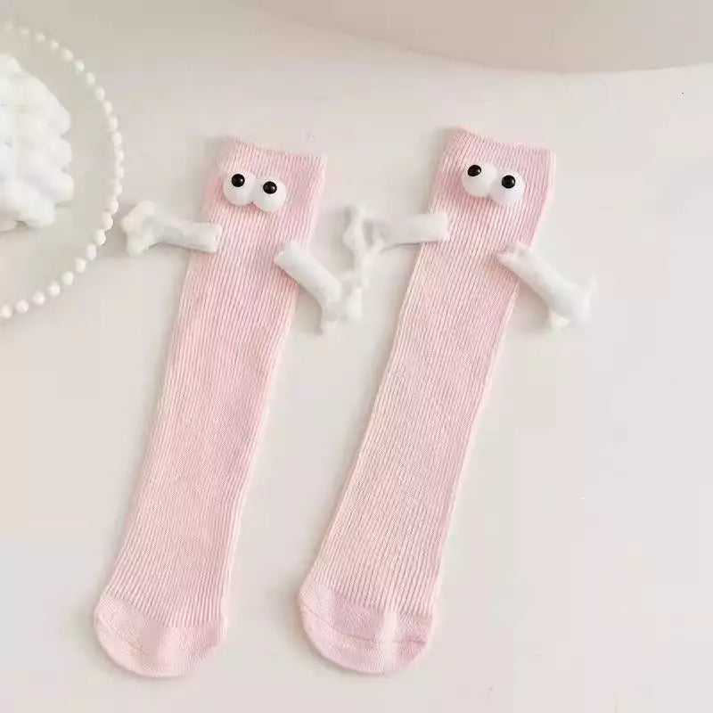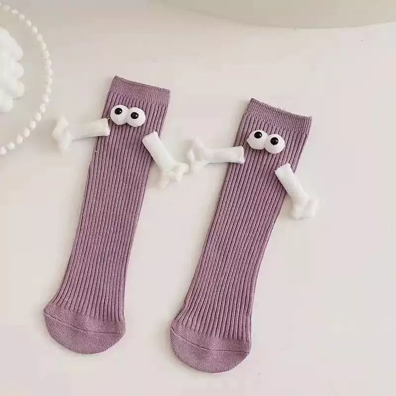 Connect in a fun and whimsical way with magnetic hands that join when standing side by side. Cute eye designs add character and playfulness. Let your socks reflect the joy and happiness you share with your loved one!